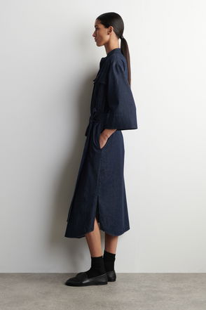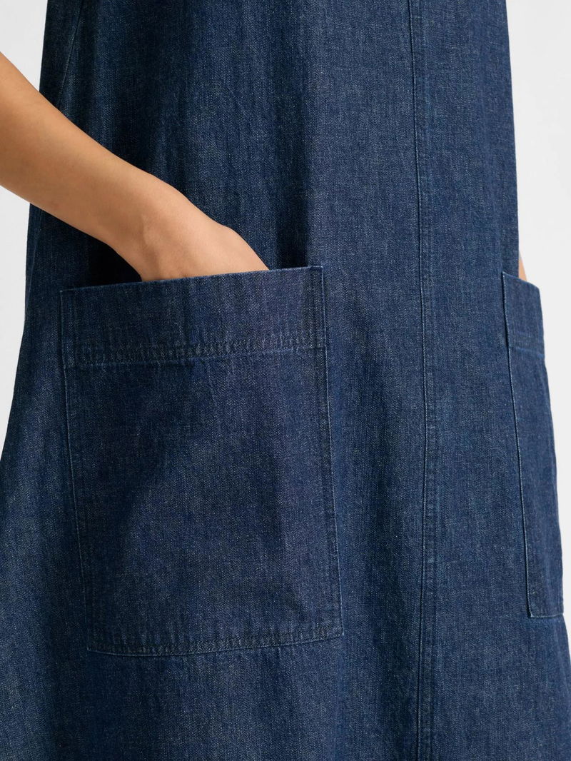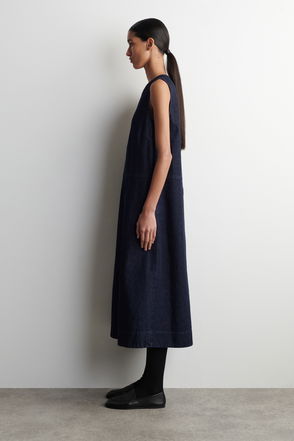 V-Neck Denim Midi Dress, Indigo