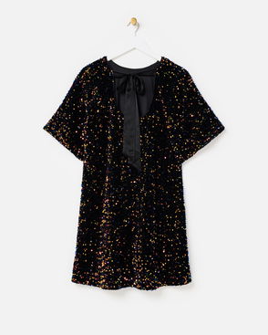 This Velvet & Sequin Puff Ball Short Dress combines luxurious stretch velvet with shimmering sequins for a stunning effect. The elegant funnel neck adds a touch of sophistication, while the playful bubble hem creates a flattering silhouette that moves beautifully. Designed to offer both comfort and style, this dress is perfect for special occasions where you want to feel confident and stylish.