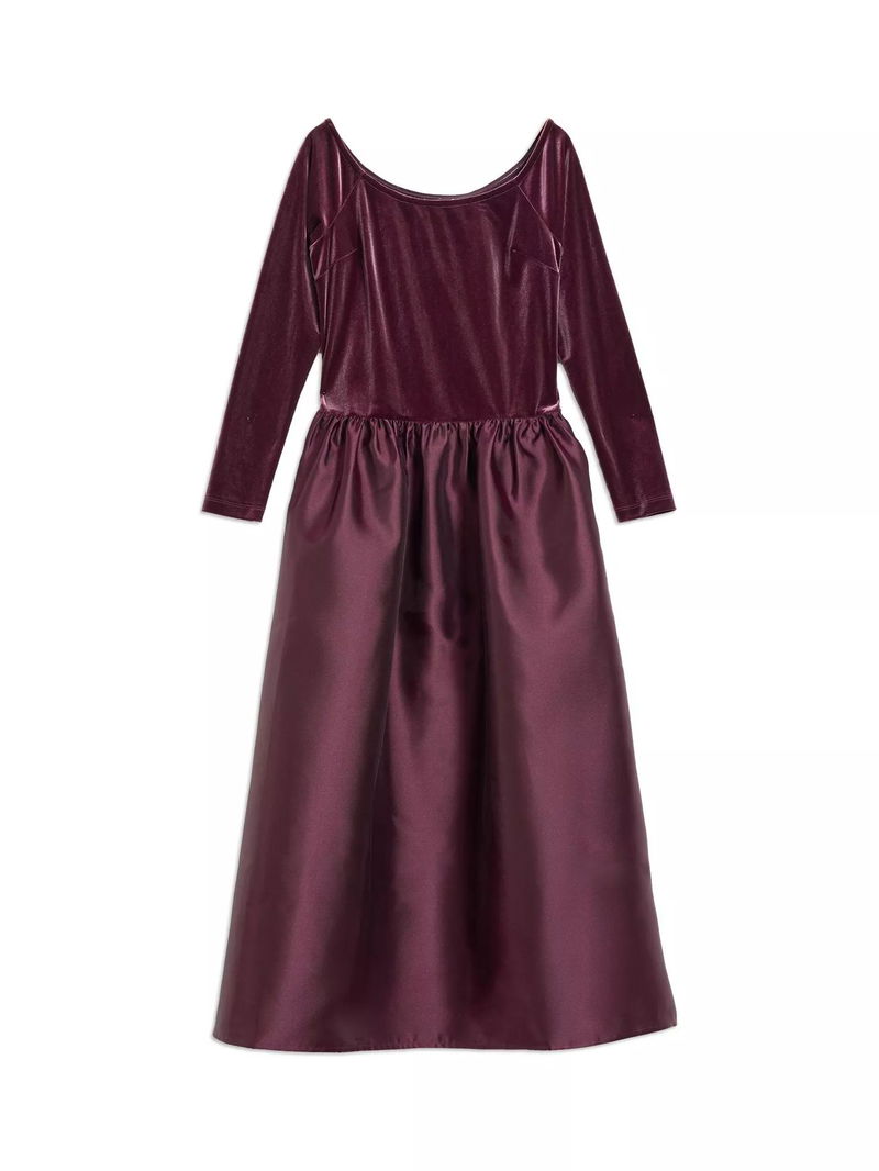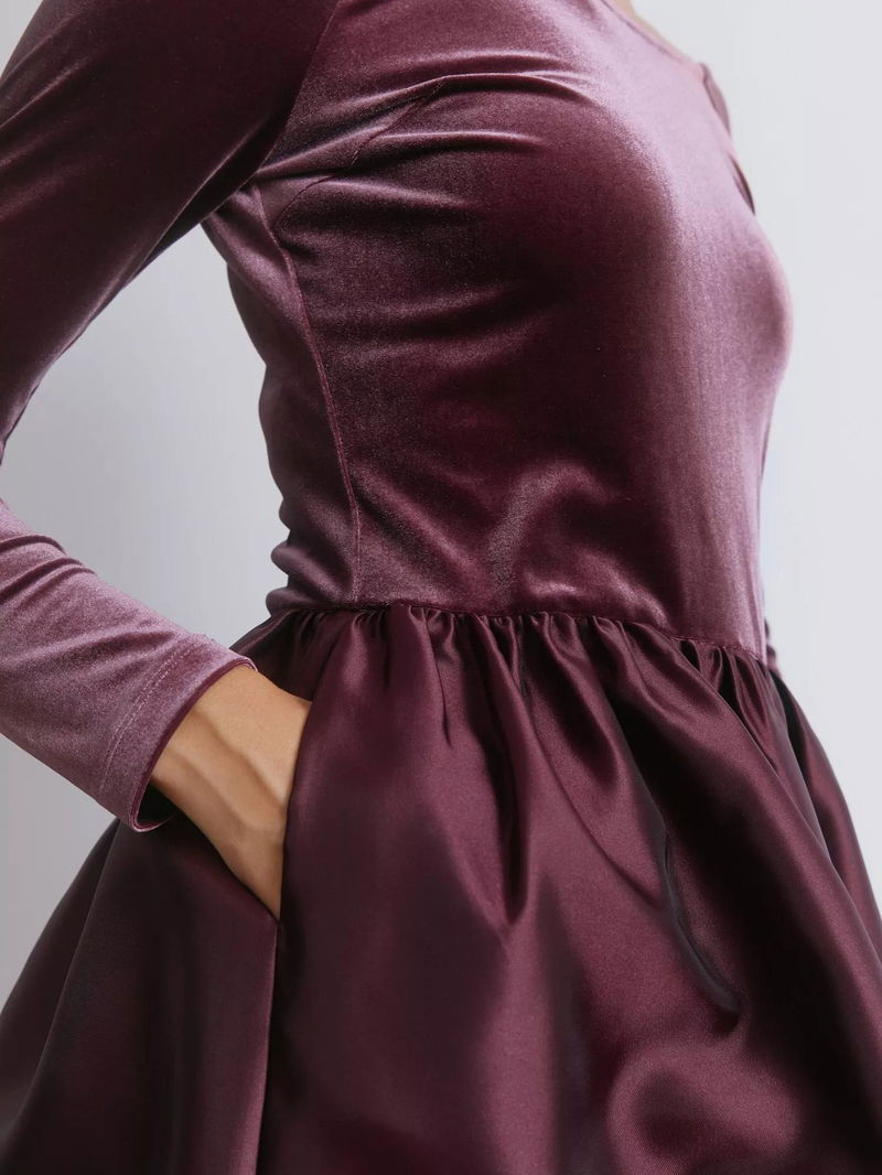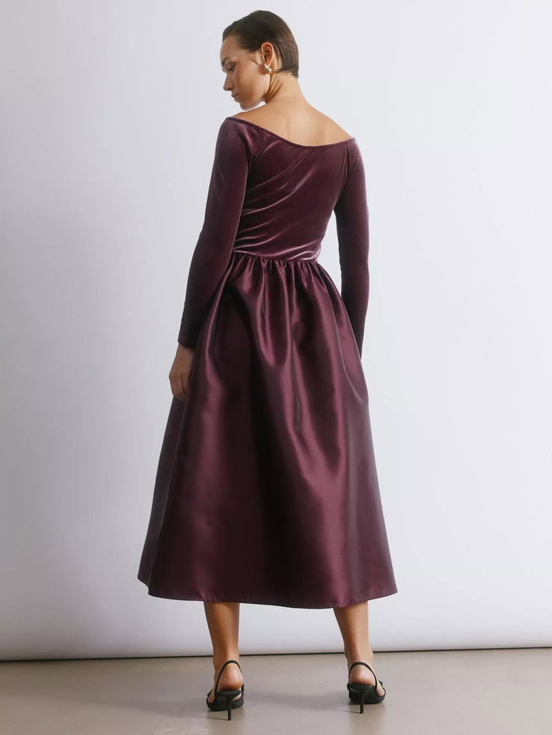 Elevate your style with this sophisticated dress. Featuring a stretch velvet top with a flattering Bardot neckline and a voluminous taffeta skirt complete with convenient pockets‚ it's party perfection.