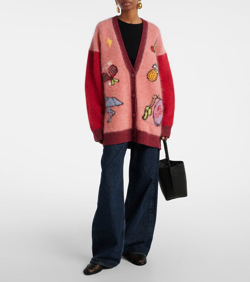 The Court cardigan from Alémais is an ideal choice when temperatures drop. Knitted from a fine blend of wools and mohair, this cozy style features a V-neckline and playful embroidery all over.