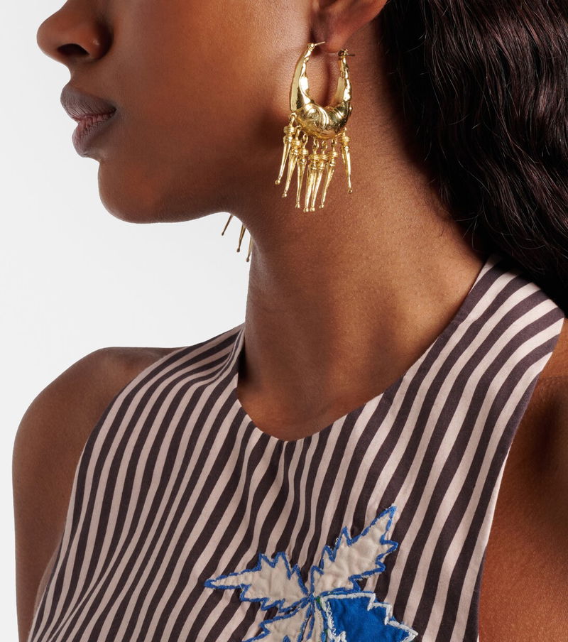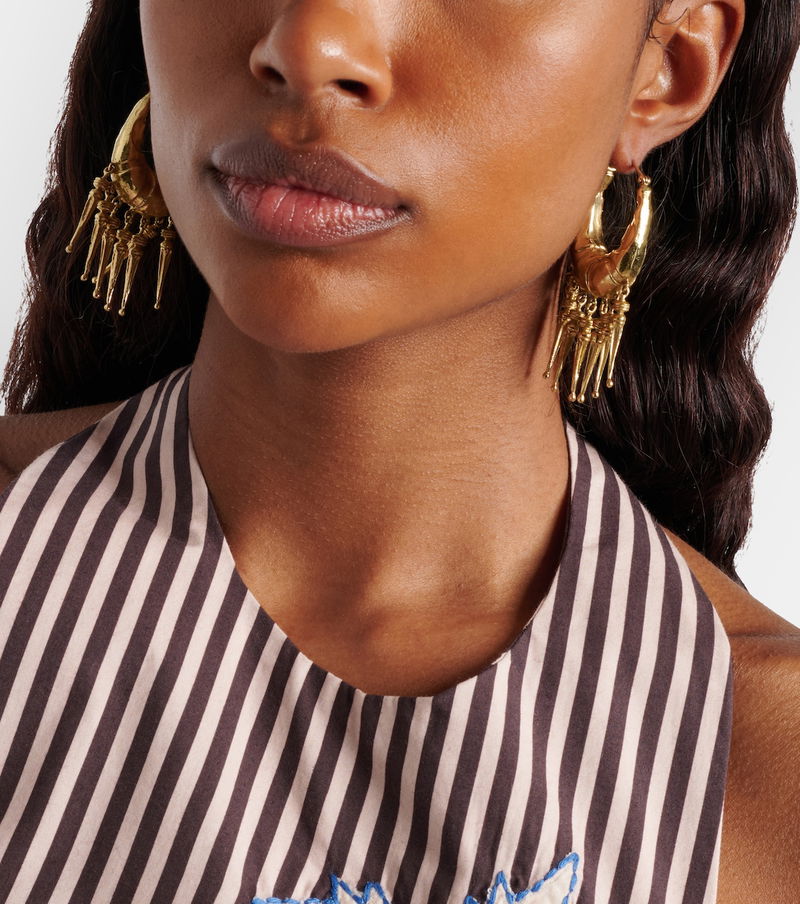 Blending contemporary and artisanal codes, Alémais infuses its designs with vibrancy. The Le Jardin Spike hoop earrings are made from gold-tone brass with a hammered finish and detailed with dangling adornments.