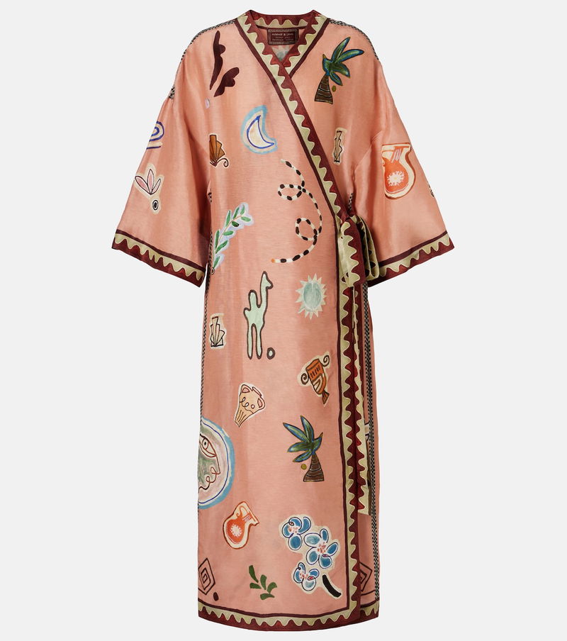 A contemporary brand with an artisanal focus, Alémais celebrates the art of fashion through an eclectic mix of patterns and prints. This midi dress is crafted from printed linen and a silk-blend fabric, and features a wrapped front.