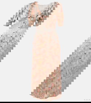 A contemporary brand with an artisanal focus, Alémais celebrates the art of fashion through an eclectic mix of patterns and prints. The Seraphina midi dress is made from breathable linen with an intricate motif and puff sleeves.