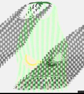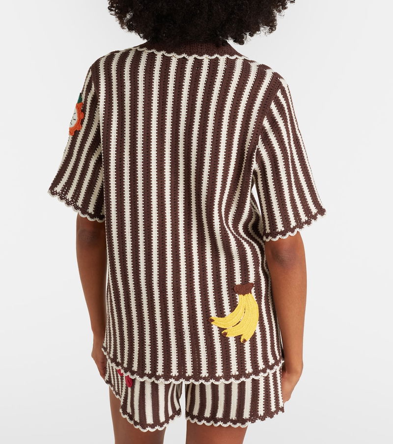 A contemporary brand with an artisanal focus, Alémais celebrates the art of fashion through an eclectic mix of patterns and prints. Crocheted from pure cotton, the Sundae bowling shirt features embroidered fruit motifs, scalloped trims, and a V-neckline.