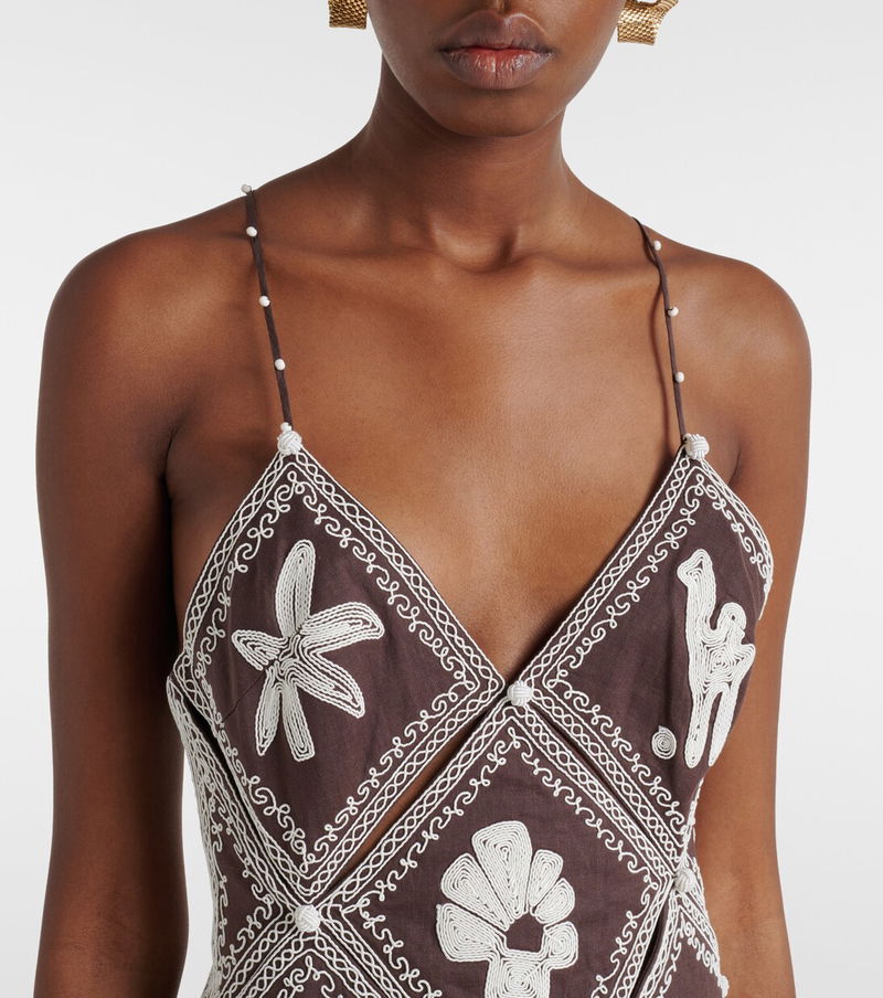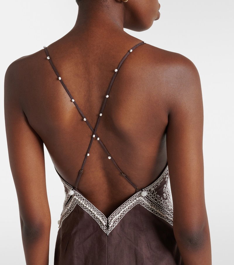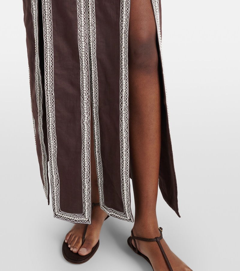A contemporary brand with an artisanal focus, Alémais celebrates the art of fashion through an eclectic mix of patterns and prints. Realized in collaboration with Laurence Leenaert, the Leandra maxi dress is defined by artisanal corded embroidery and diamond-cut paneling.