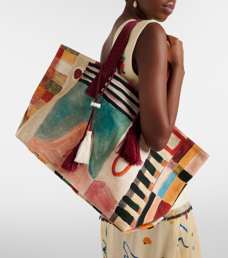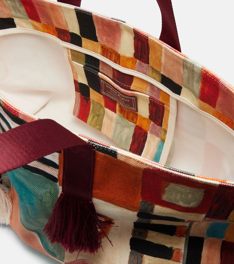 Alémais has collaborated with LRNCE, a Marrakech-based lifestyle brand with a focus on the city's artistic heritage. The Michelle Large tote bag is made from cotton canvas with fringed tassels and a vibrant motif.