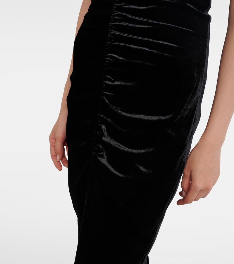 Count on Alessandra Rich for unforgettable looks. Crafted from velvet with delicate lace trims, this strapless gown showcases a front slit and features a ruched finish and a tonal bow at the neckline.