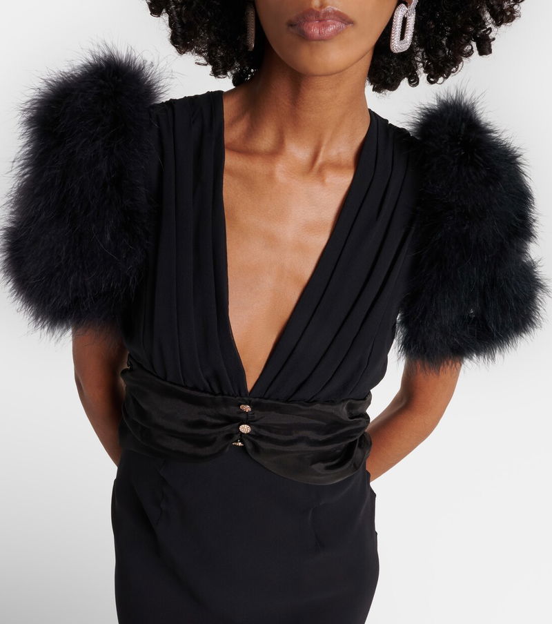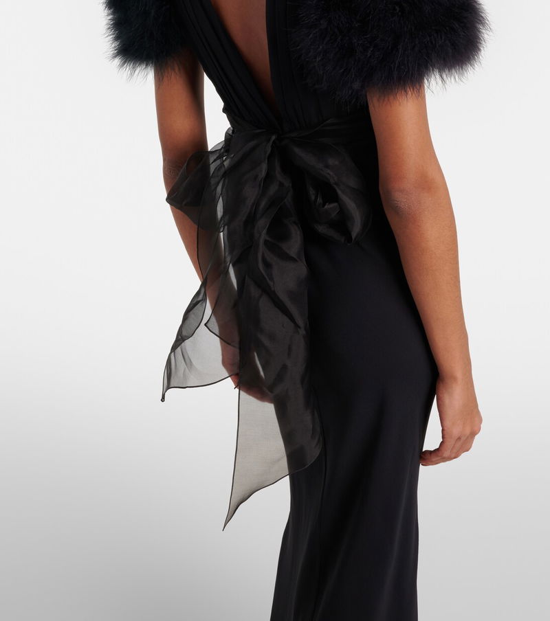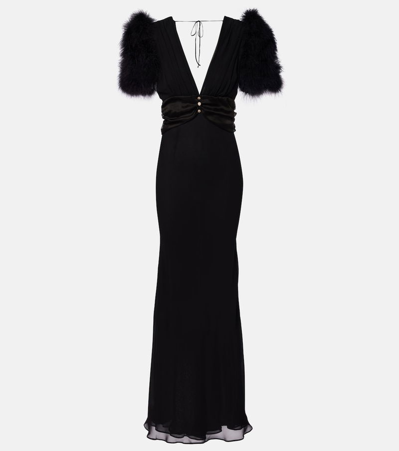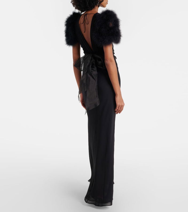 Feather-trimmed Silk Georgette Gown