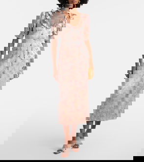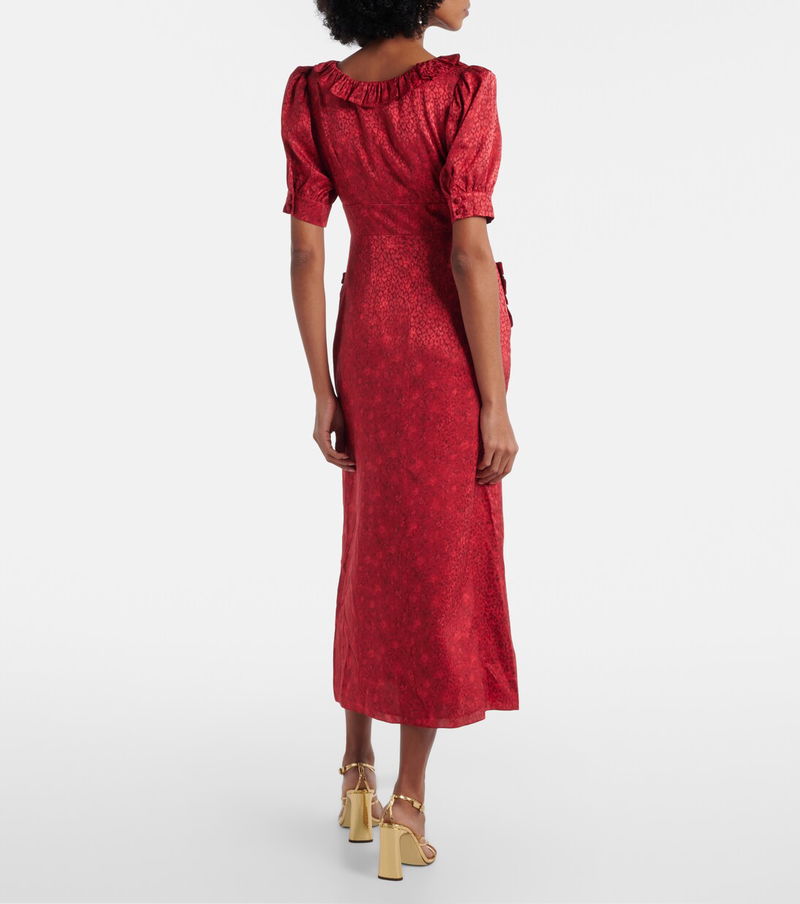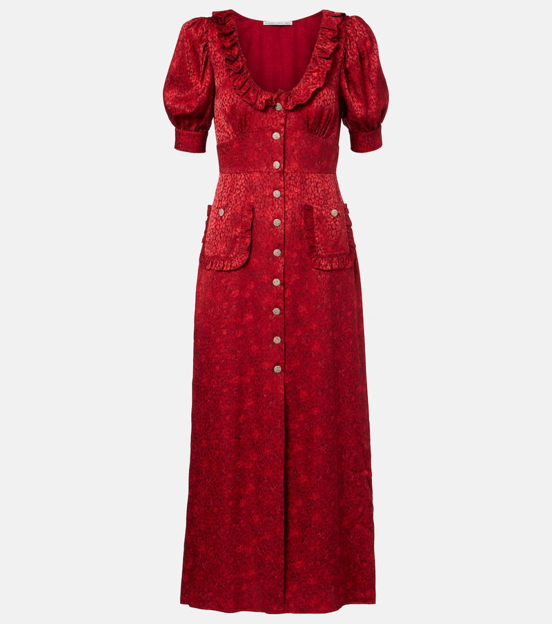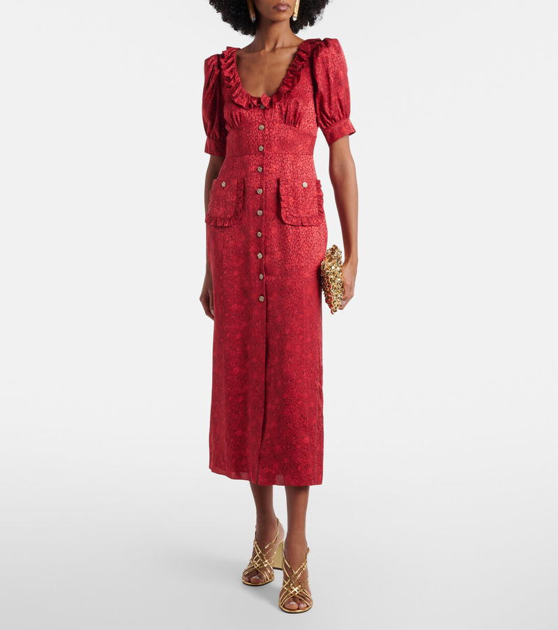 Count on Alessandra Rich for unforgettable looks, and this midi dress is no exception. Crafted in Italy from silk jacquard, this charming piece features a floral print, a buttoned front, and delicate ruffles for a romantic flair.
