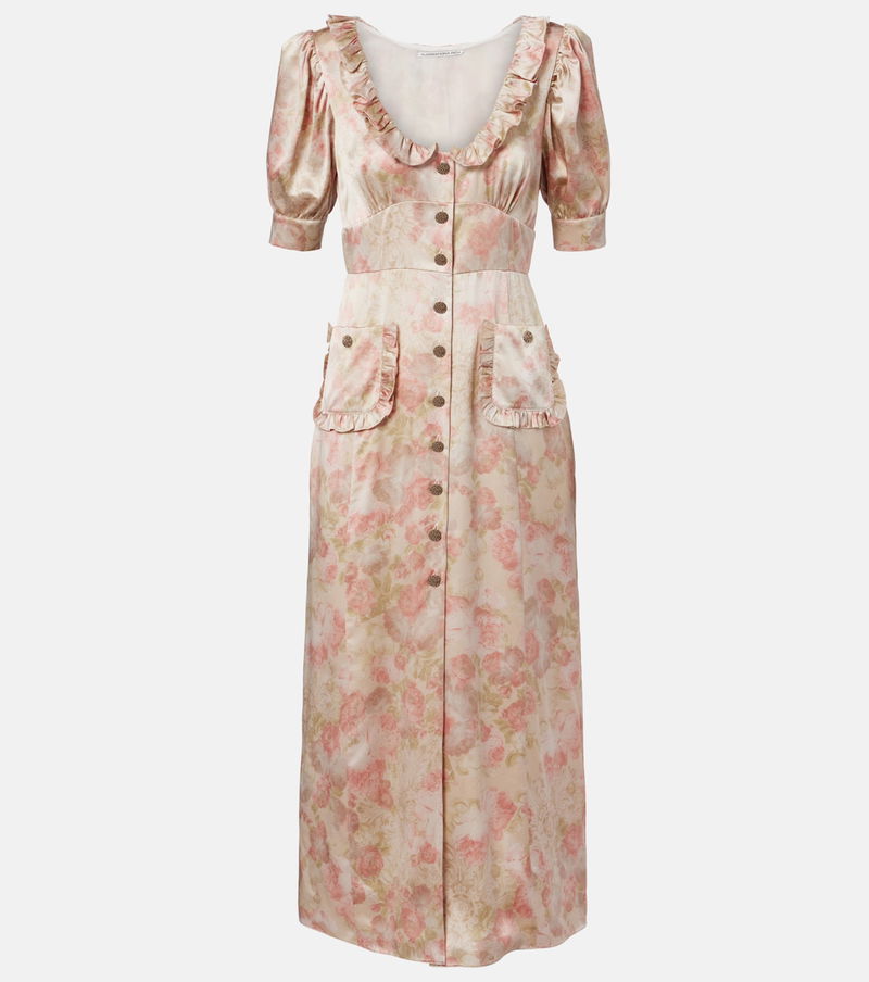 Floral Printed Silk Midi Dress