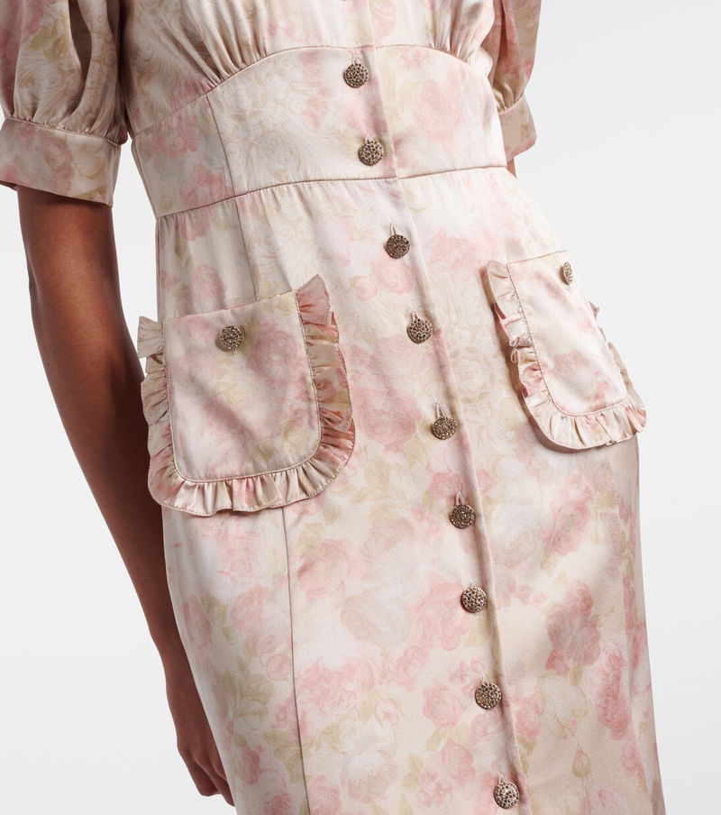 Floral Silk Satin Midi Dress