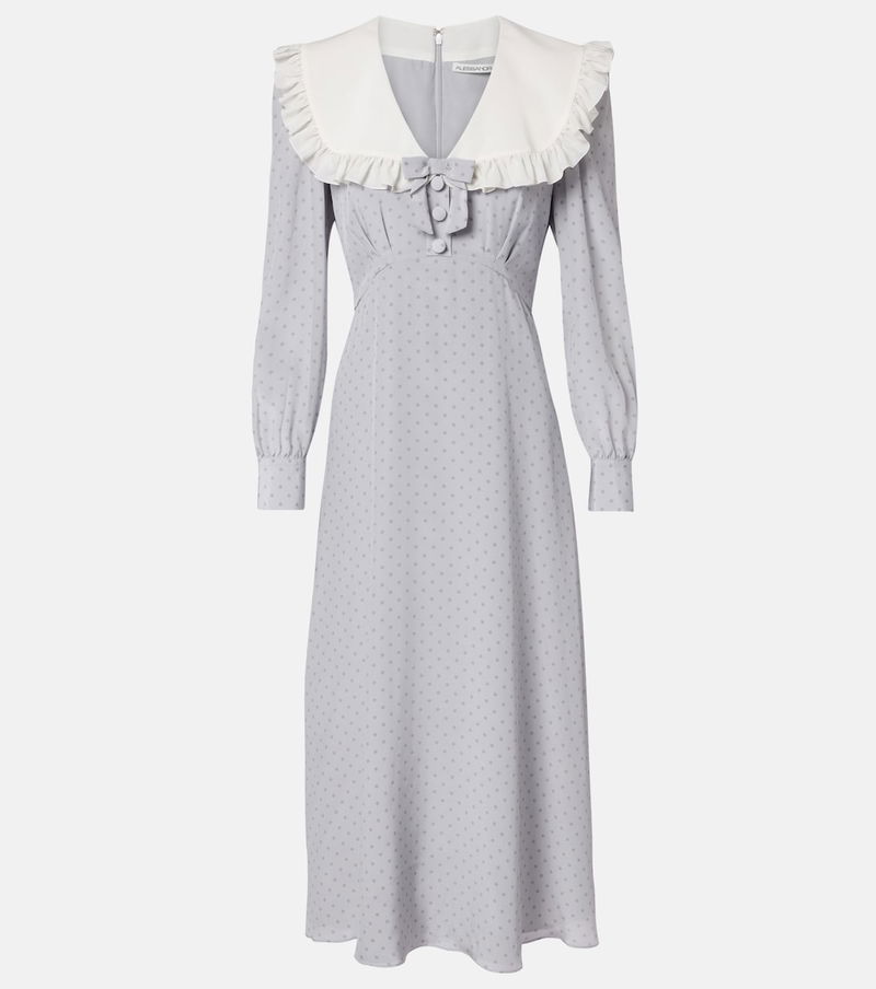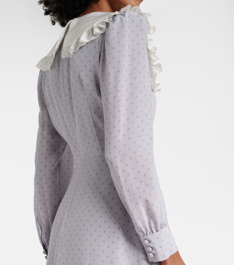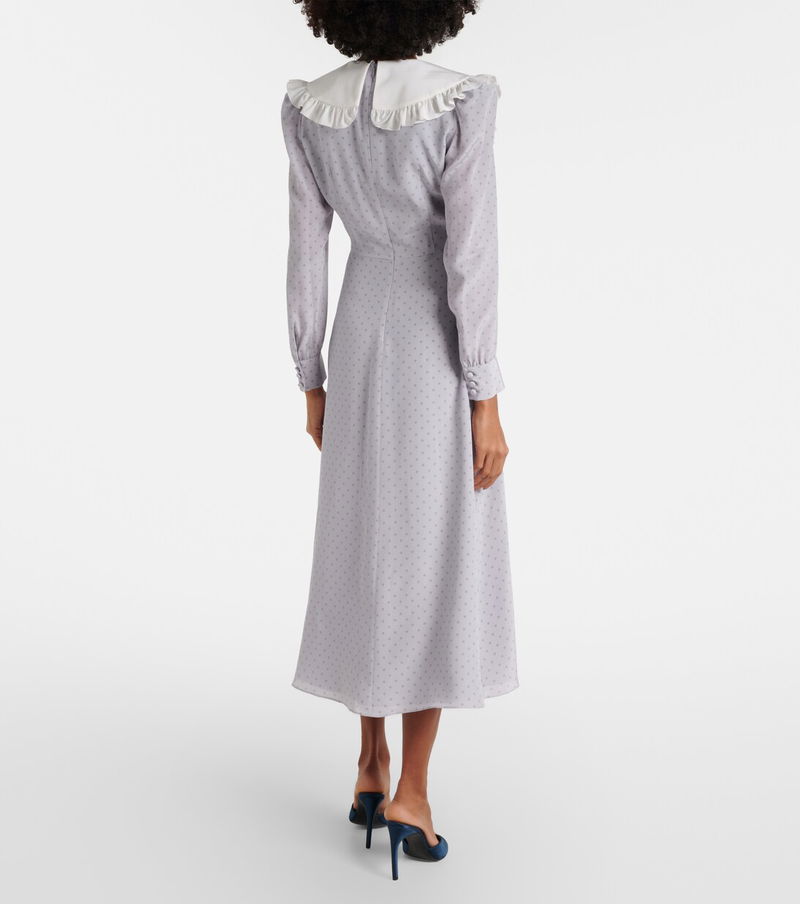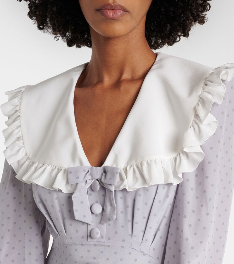 Polka-Dot Ruffled Silk Midi Dress