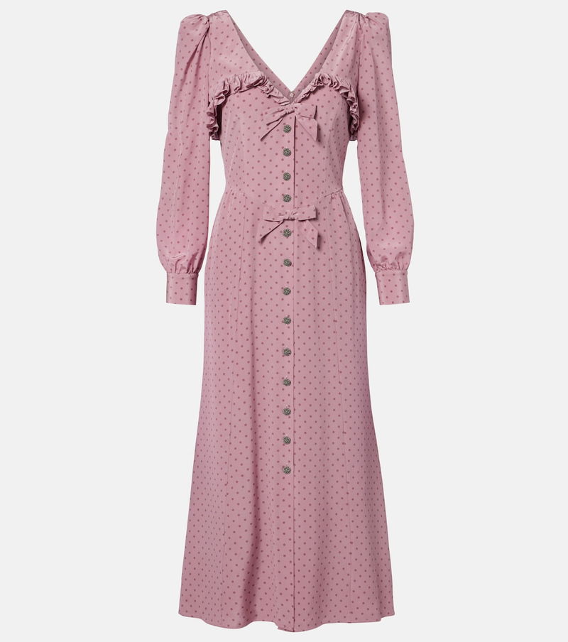Polka-Dot Ruffled Silk Midi Dress