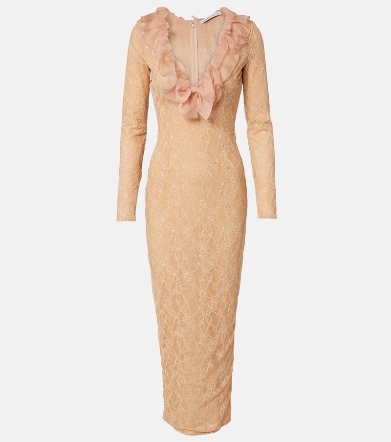Lace-Trimmed Polka-Dot Silk Midi Dress