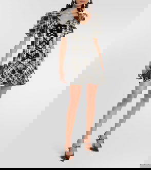 Lace-up Checked Wool Minidress