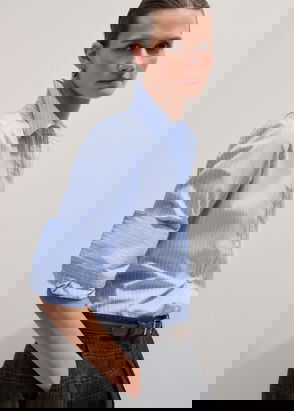 Shirt, Striped, Cotton-poplin, Buttoned cuffs, Breast pocket, Button fastenings through front, Lightweight, non-stretchy fabric.