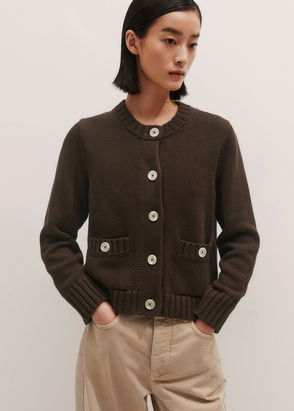 Alex Mill's cardigan is entirely knitted with cotton yarns left over from past productions - the expertly blended tonal-blue shades create a beautiful depth. It's designed in a slouchy silhouette with dropped shoulders and ribbed trims. Button it all the way through the high neckline or leave it undone over a T-shirt.