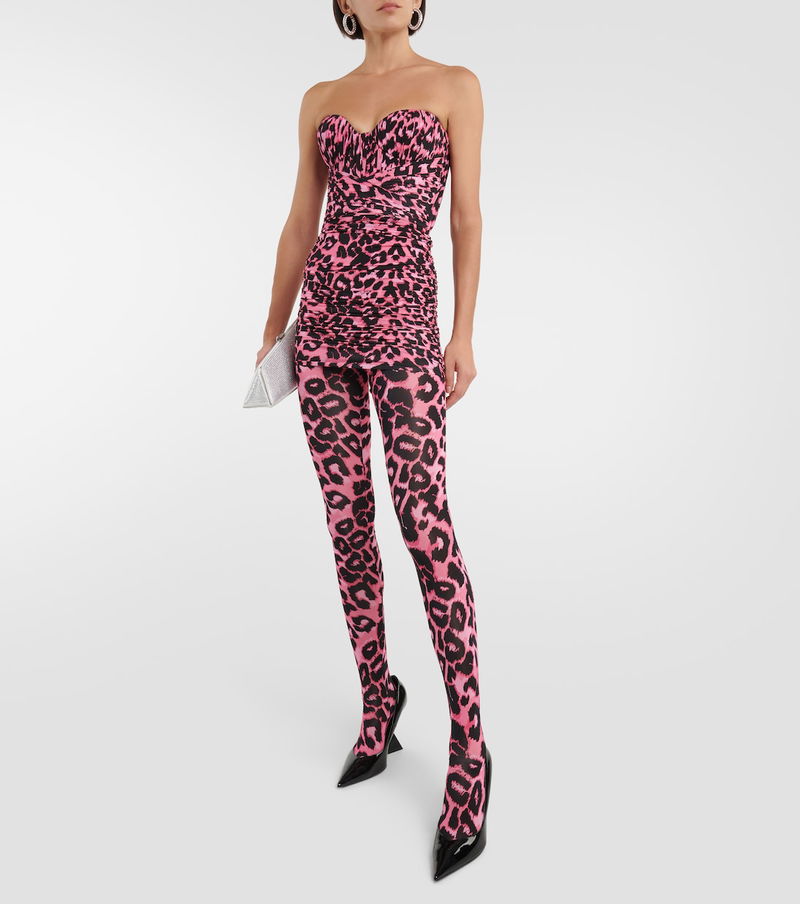 Step into the limelight with styles from Alex Perry, which have illuminated the red carpet time and time again. The Cadie tights have a striking pink leopard print. Pair with the matching Kiran miniskirt.
