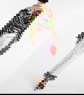 Poplin Straight Leg Trousers With Pull-on Waist In Lilac Stripes