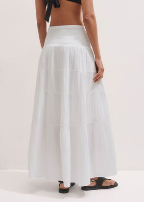 Cheesecloth Tiered Maxi Skirt White
