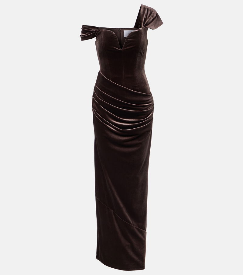 Standout in Alex Perry, whose designs are known for their sharp, refined impact on the red carpet. Made from velvet, this glamorous gown features a sweetheart neckline and is complete with elegant draping.