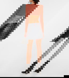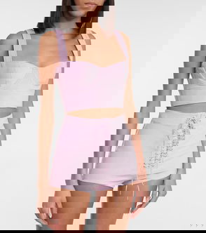 Crystal-embellished Pinstripe Velvet Bodysuit