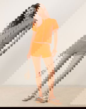 Compact Knit Shorts Co-ord With Front Pocket Detail In Orange