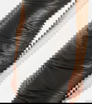 Ruched Leather Midi Dress