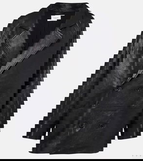 Shearling-Trimmed Cropped Leather Biker Jacket