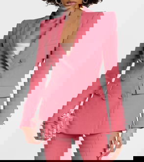 Alexander McQueen’s late founder trained as an apprentice on London’s prestigious Savile Row, and this pink double-breasted suit jacket embodies the house’s meticulous tailoring.