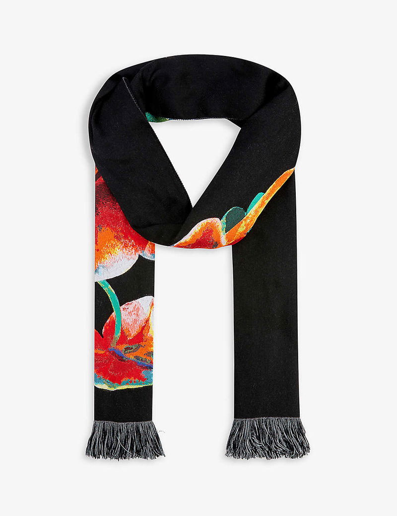 Alexander McQueen has always been renowned for his particular knack of striking the perfect balance between the grotesque and the beautiful. As such, it's a signature Creative Director Sarah Burton continues to carry into her reign at the helm of the British label, proven by the Orchid Skeleton scarf. Spun from a toasty wool blend to keep unwanted chills at bay, its fringed silhouette is painted with a darkly dramatic motif echoing the brand's artistic inclinations.