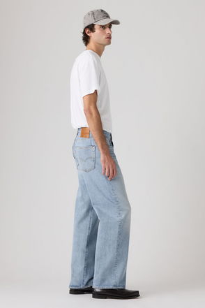 The dark blue pocket-shaped patch at the thigh and unpicked hems of Alexander McQueen's jeans bring a deconstructed edge to classic denim.