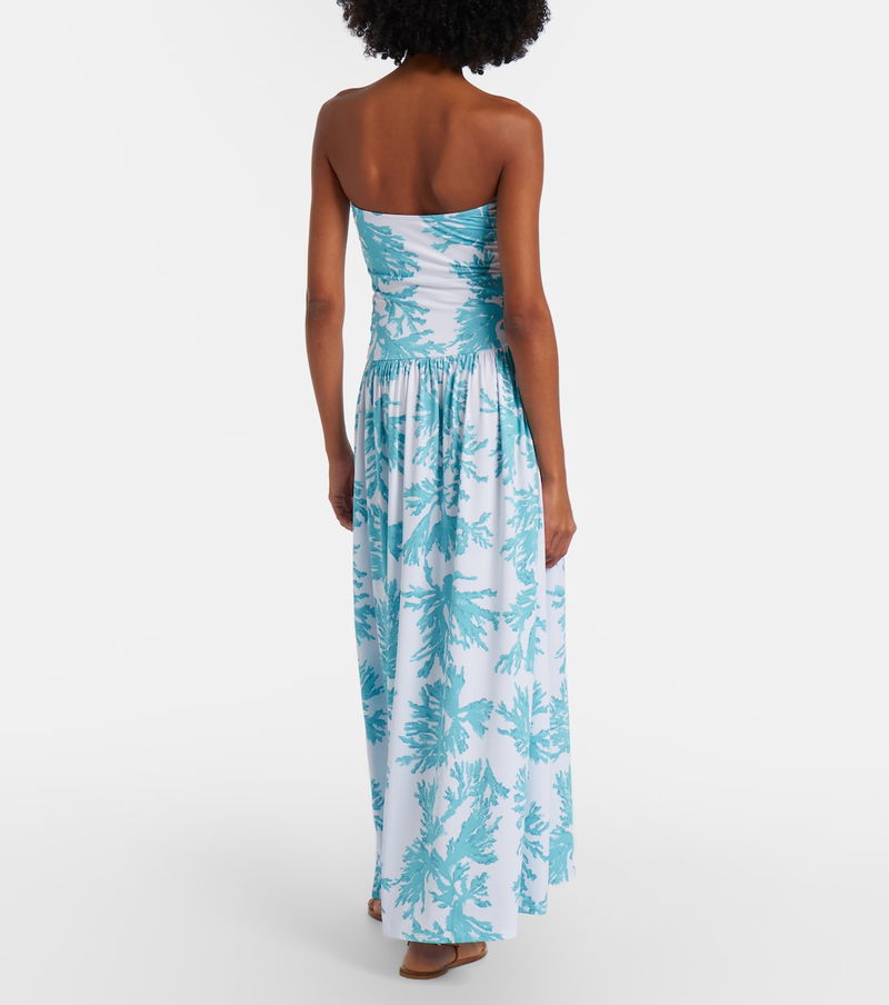 Alexandra Miro's bold resort-ready styles are made to add excitement to your vacation wardrobe. This Ottilie midi dress showcases a striking coral print, complemented by a flattering strapless silhouette and dropped waist.