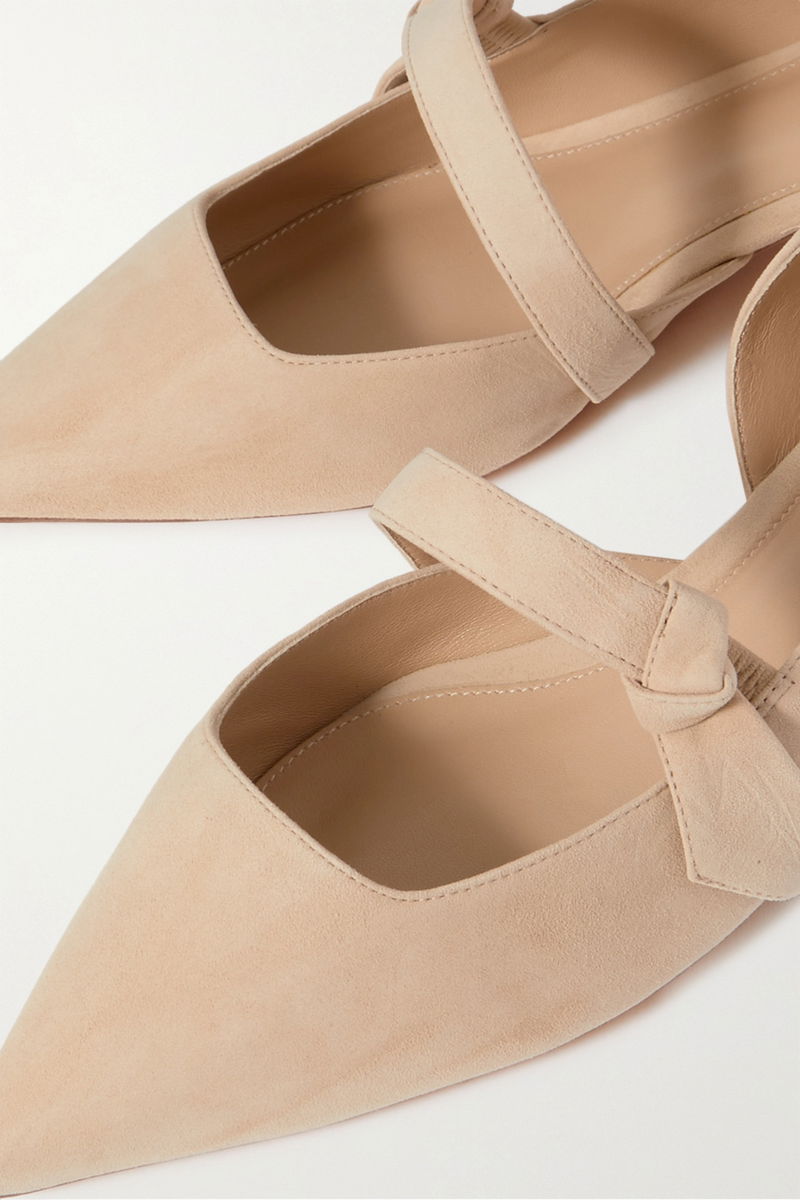 Modeled on timeless Mary Janes, Alexandre Birman's flats have slim straps topped with the label's signature 'Clarita' bows. They're crafted from velvety suede with smooth leather linings and d'Orsay sides.