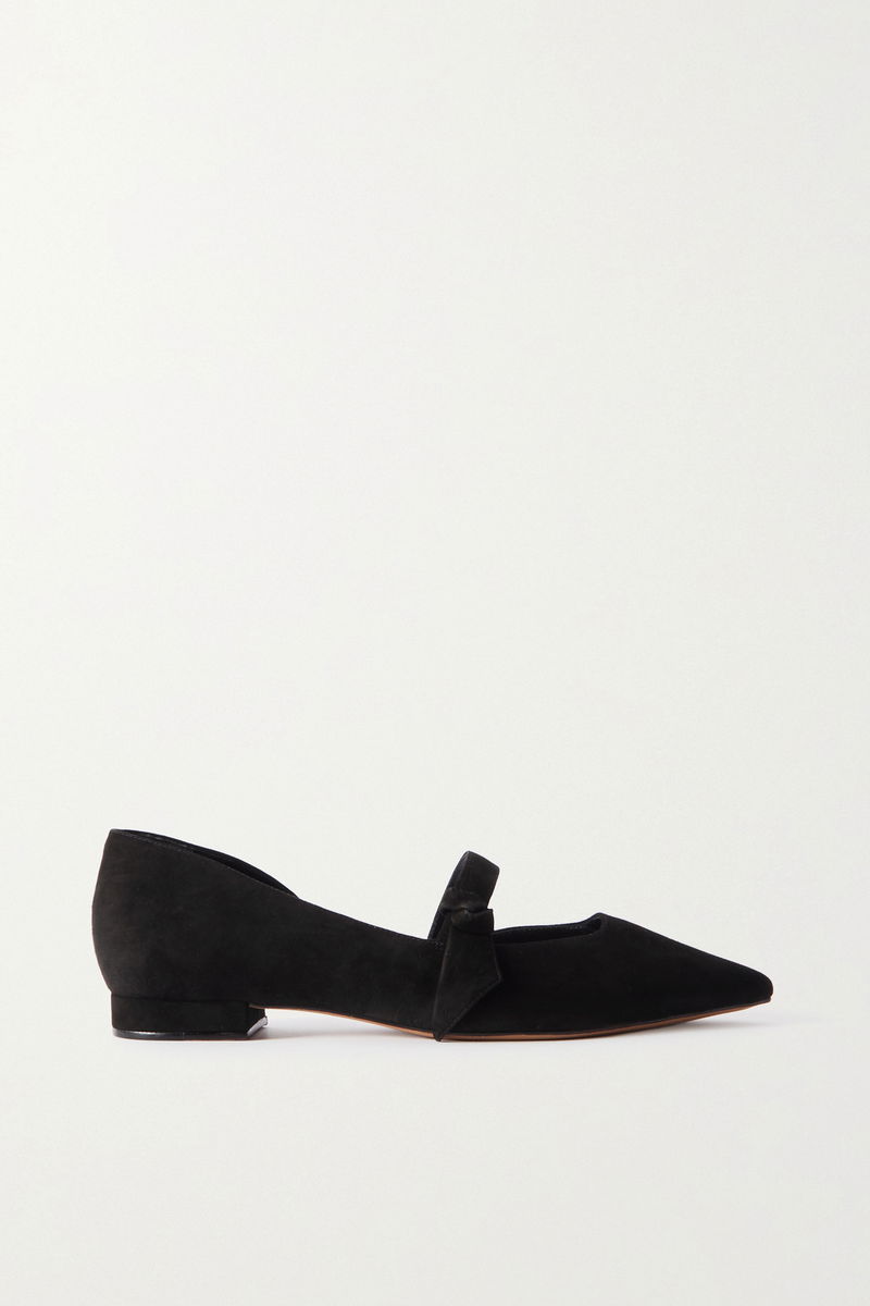 Modeled on timeless Mary Janes, Alexandre Birman's flats have slim straps topped with the label's signature 'Clarita' bows. They're crafted from velvety suede with smooth leather linings and d'Orsay sides.