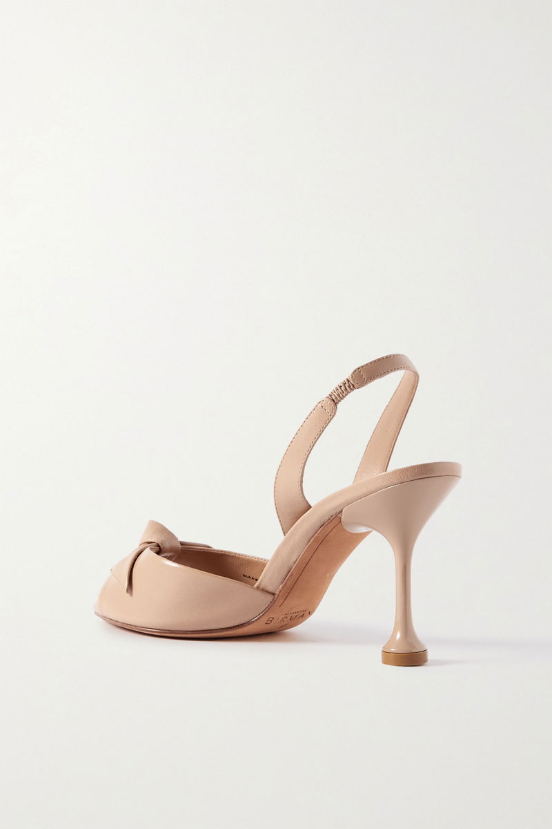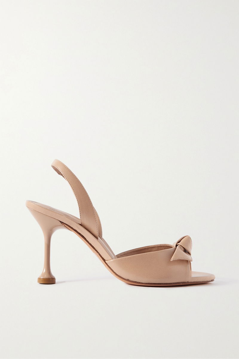 Alexandre Birman's 'Clarita Easy' sandals are sweet and romantic. Made from beige leather topped with signature bows, they have supportive slingback straps and flared heels that won't sink into the grass at outdoor events.