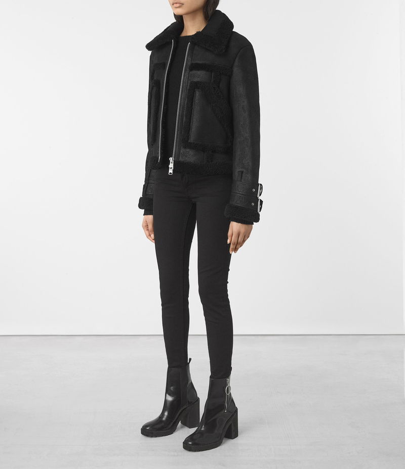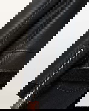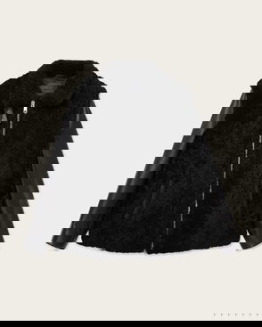 The Asher biker jacket is crafted entirely from thick sheepskin for ultimate warmth and luxury. Textured shearling seams create structure in the oversized silhouette, while belted cuffs add our signature biker detail.