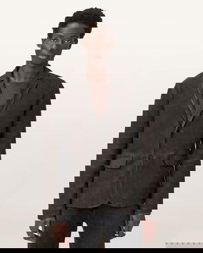 The Adler Jacket. Crafted from rust coloured suede. In a relaxed shape. Layer your collars. For a 70s vibe.