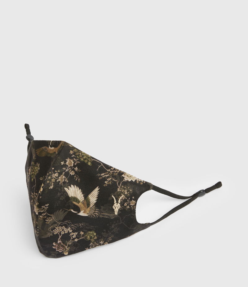 Grab our new Face Mask on your way out. It's floral and bird print with our Ramskull embroidered on the side. With three layers, it's got elastic straps for comfort and a close fit. Please note this is a non-surgical mask.