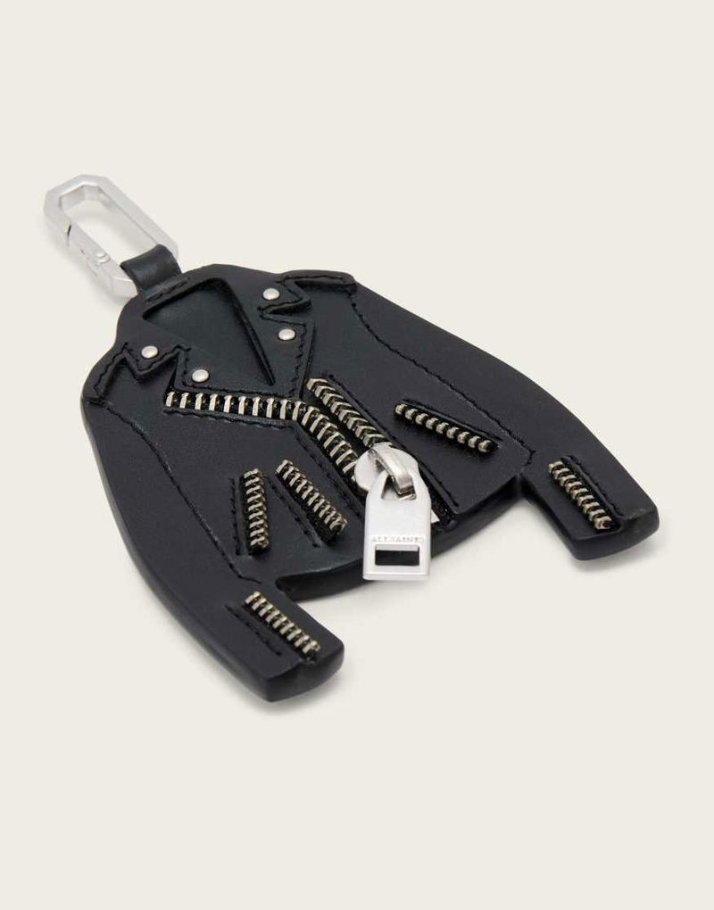Balfern Leather Jacket Keyring In Black And Silver