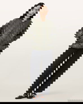 Classic styling in a new easy silhouette. The Belle Bomber is made from soft leather in a traditional vintage bomber shape with ribbed trims. The new shape has an effortless feel that's oversized with dropped shoulder shaping and wider sleeves. Complete with classic topstitching detailing and two lower pockets, it's the perfect throw on piece that lends well to laidback dressing as we head into cooler months.