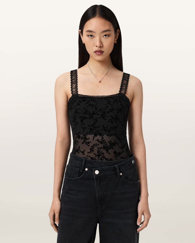 Trousers or skirts - the Charli Bodysuit works perfect with both. With black branded lace detailing across the front and back neckline in typical AllSaints fashion.