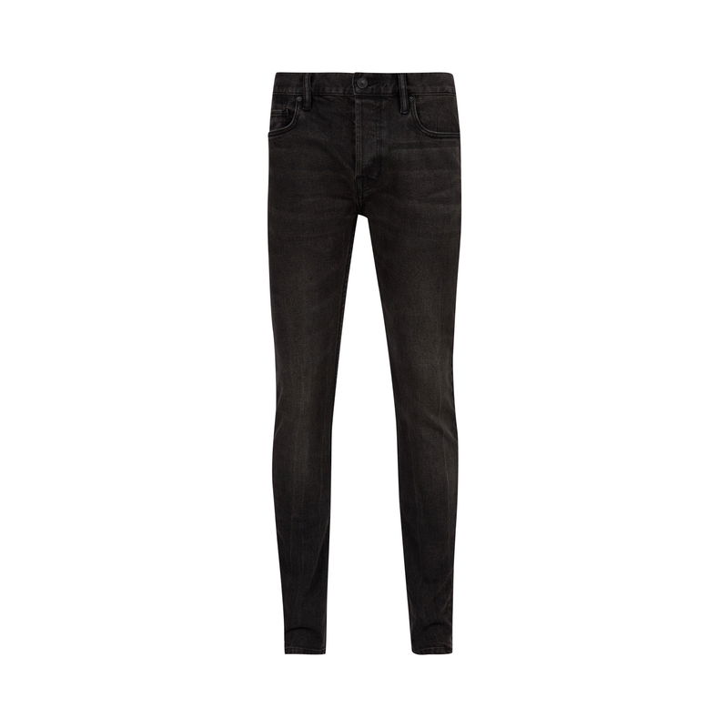 Fly clip. Unique AllSaints coffin pocket. High quality chain stitch hem. 1800s workwear-inspired, reinforced belt loops. Traditional concealed rivets on back pockets. Reinforced fly button with leather washer. Back pockets with Ramskull horn stitching. Back pocket with extra fabric to hold necessities. Scoop pocket with interior taping for extra reinforcement.