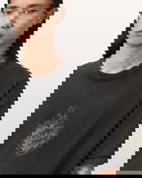 The Cracked Crew T-Shirt is a black staple cut to a simple crew neck and short-sleeved silhouette, with drop-shoulders for casual styling. A hand illustrated chest graphic depicts a weathered Grecian statue on the chest and back.