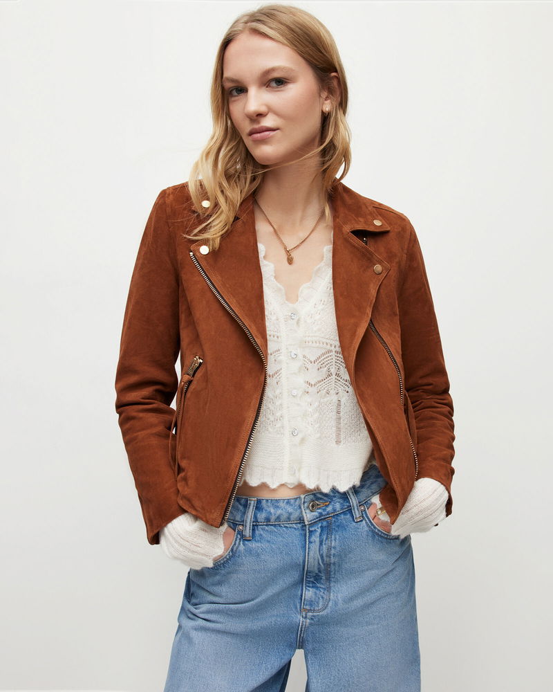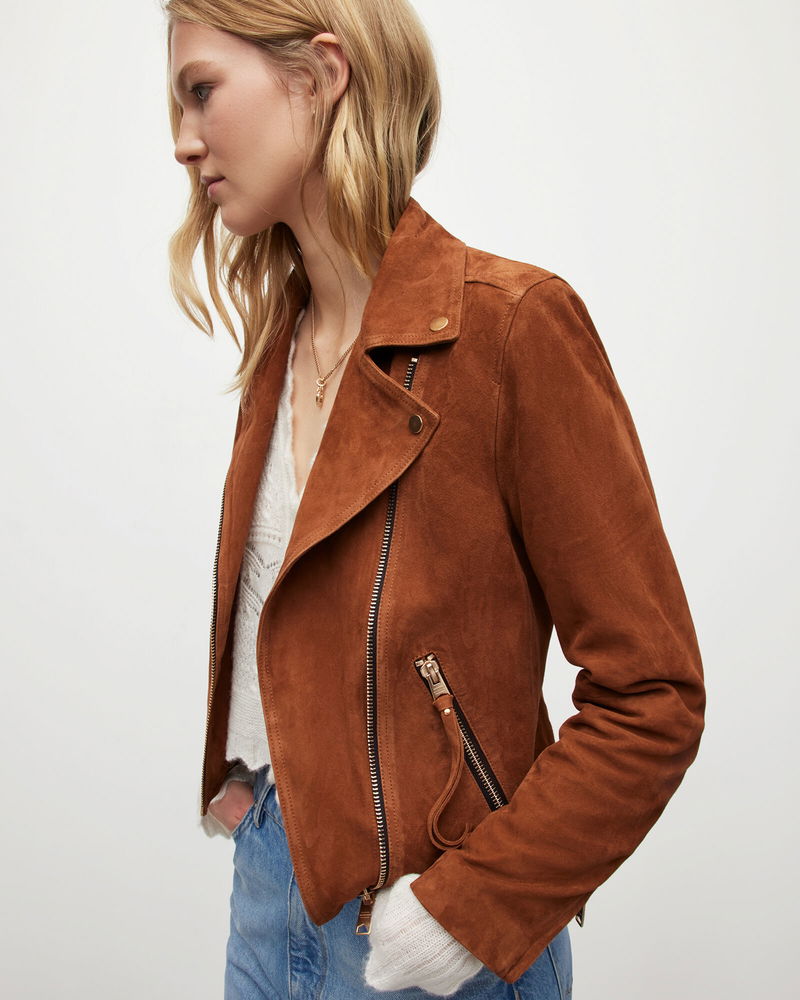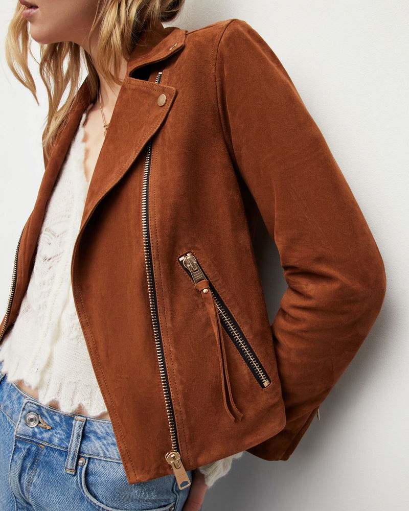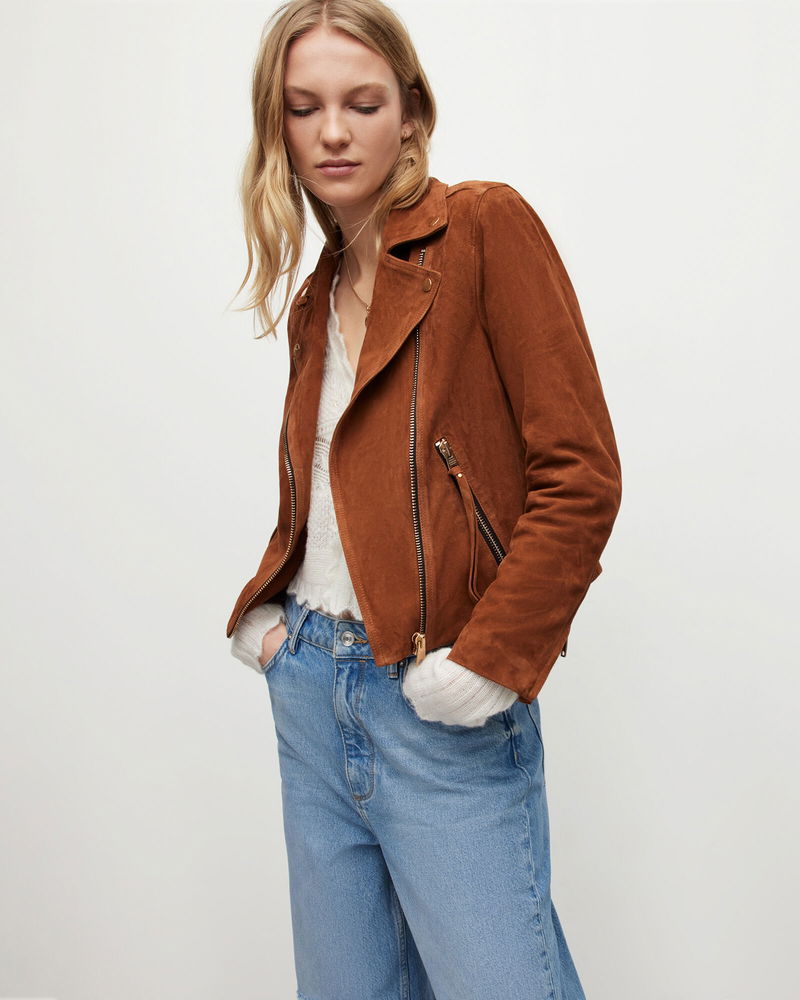 Keep it simple. The Dalby Biker Jacket features two lower pockets and minimal metal hardware, against a soft suede backdrop – a timeless classic.
