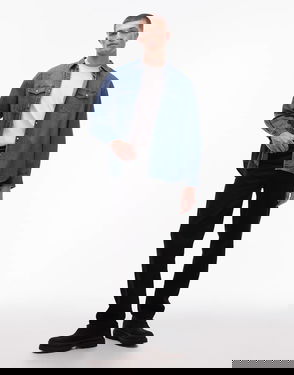 Worn-in denim. The Dore Shirt is crafted from robust cotton, washed for a high-low finish with damages and a frayed hem.