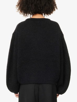 This jumper is designed to a relaxed fit. Pullover. Long sleeves. Crew neck. Pleated polka dot mesh panel. Ribbed trims.