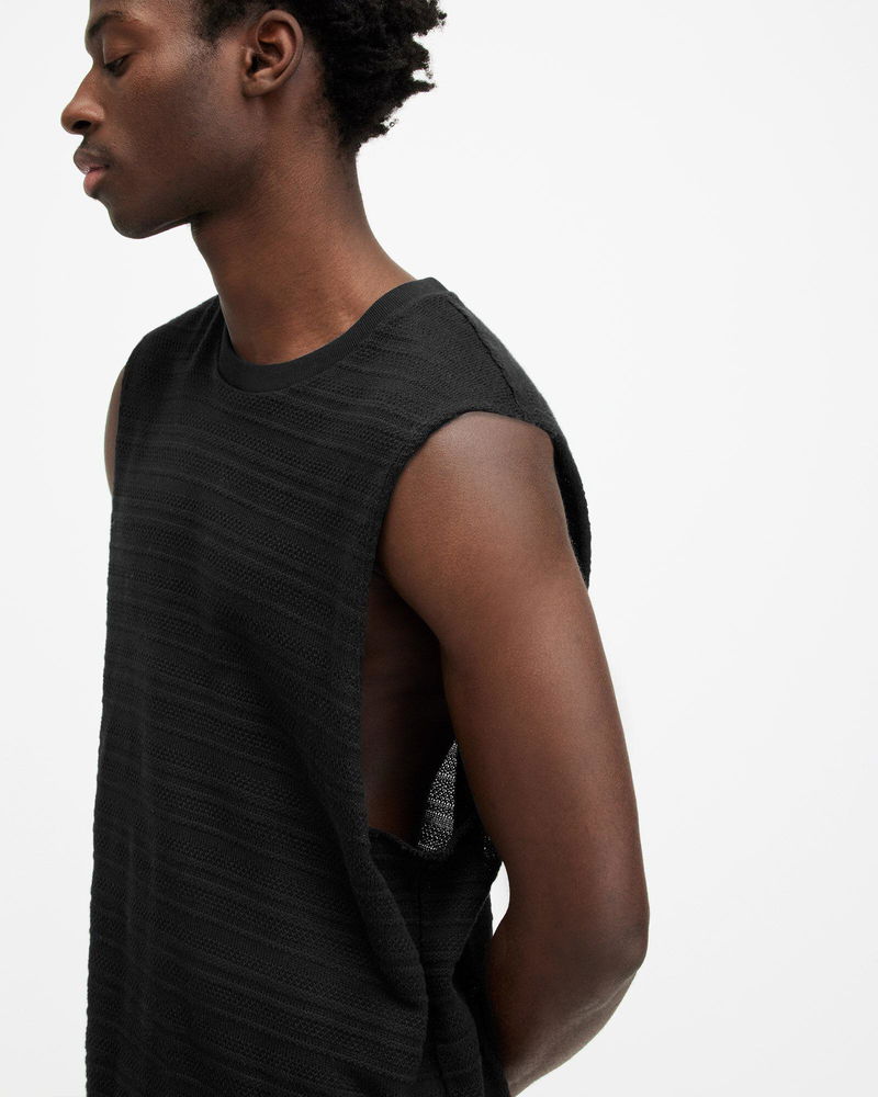 With the Drax Vest, it's all about the detail. Made from organic cotton to a relaxed fit with a crew neck and sleeveless shaping. The fabric has been manipulated to create an open-stitch texture, while a mix of stitched detailing refines the finishings. An improved take on basic staples, add it to your seasonal rotation.