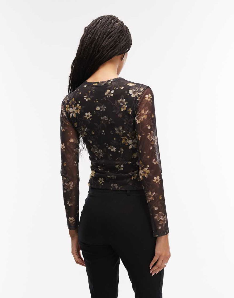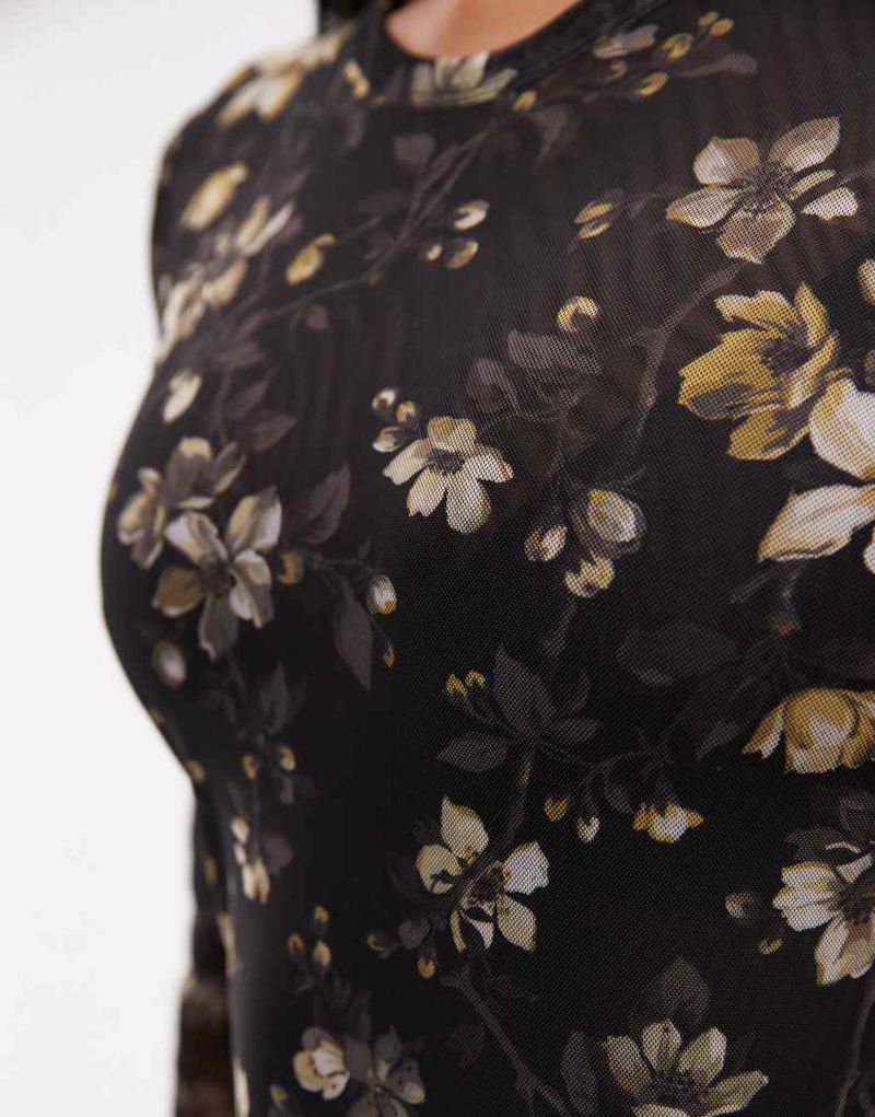 Ellie Mesh Long Sleeve Floral Top In Black