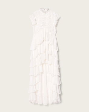 Channel the bohemian spirit in the Eris Dress. Crafted from a floaty fabric. With lace trim inserts. Shaped to a maxi length. With a fitted bodice. And voluminous skirt.